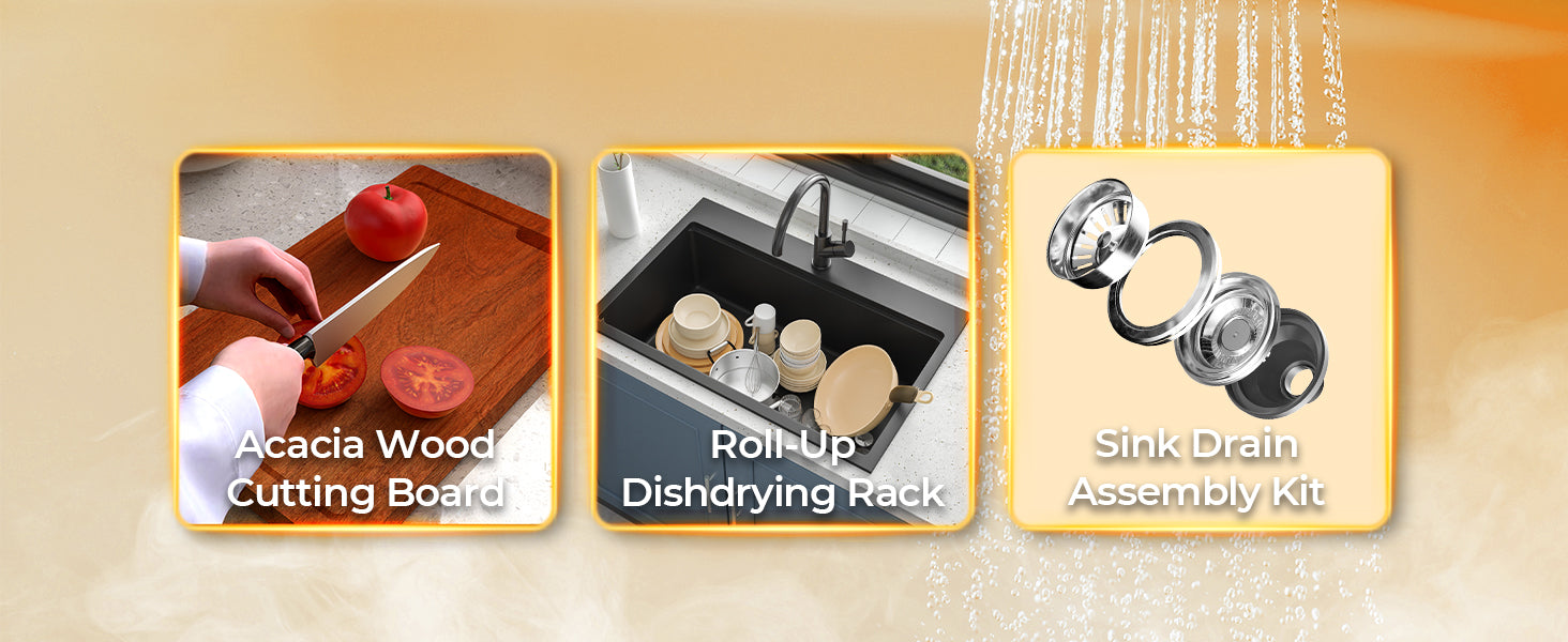 Workstation Kitchen Sink, 33 inch Granite Composite Single Bowl Topmount Sink with Accessories Drying Rack and Cutting Board, Matte Black
