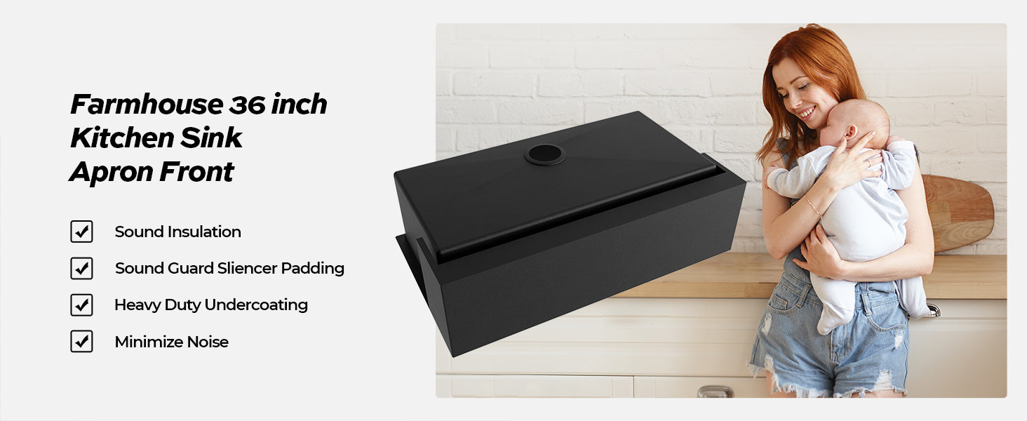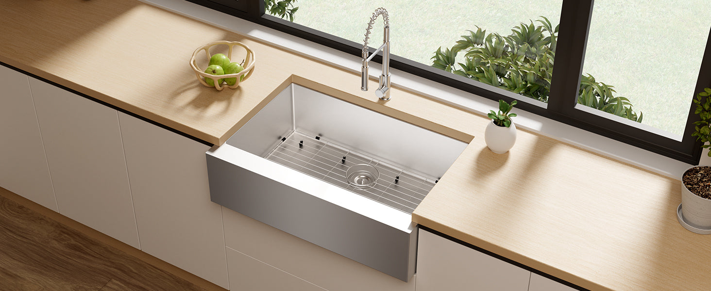 TECASA Flat Apron Front 16 Gauge Stainless Steel Kitchen Sink-36 inch Farmhouse