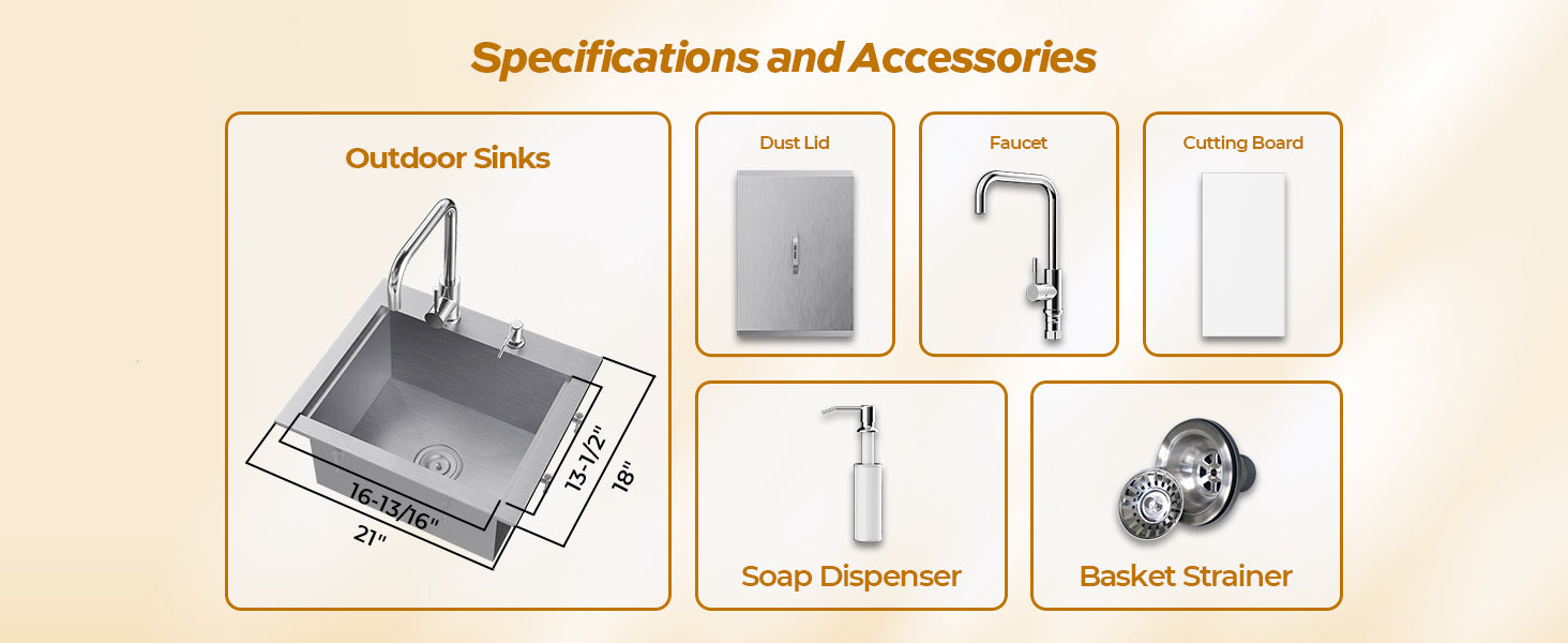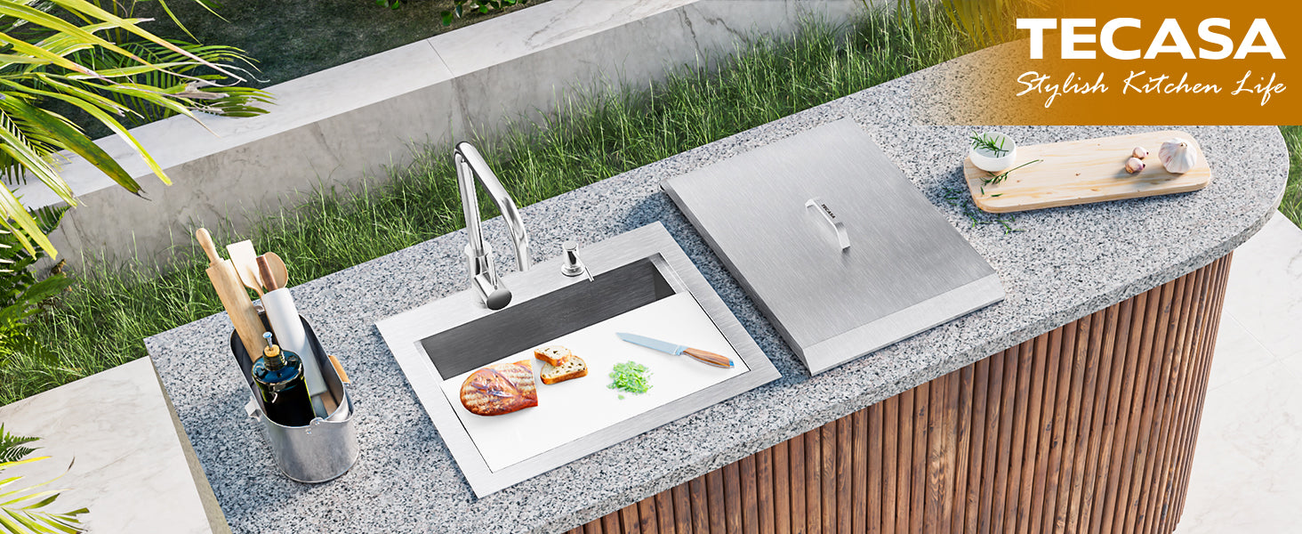 TECASA Outdoor 21 x 18 inch Drop-in Workstation Kitchen Sink